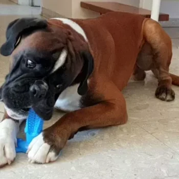 An excellent chew toothbrush for my teething 2 1/2 month old Golden Retriever puppy.