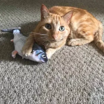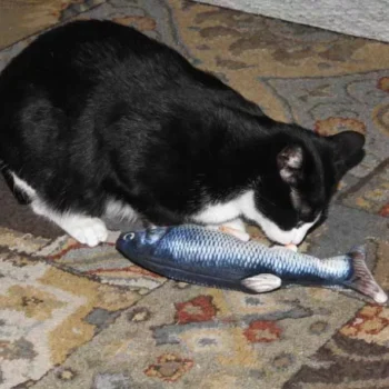 Since opening this toy, my cat has refused to put it down. He has spent literal hours just carrying it everywhere with him and watching it until the battery finally died and he lost interest. Luckily, the fish has a rechargeable battery so I just plugged the fish in overnight and it was as good as new in the morning. He likes to carry the fish everywhere with him, it even came bird watching on the windowsill with him. The motor to the fish isn’t loud but it isn’t silent either, the fish has an on/off switch so I make sure to turn it off at night time while it’s recharging so that I’m not woken up by a stuffed fish flapping on my face. Definitely a fun toy for cats and it comes highly recommended by my cat.
