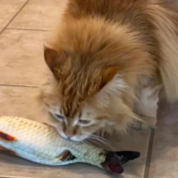My cat Petey has taken complete ownership of the toy. He is attacking the other cats when they go near it. I had no idea it would be such a big hit with the kitties. The fish find flop like a fish out of water. It’s great.