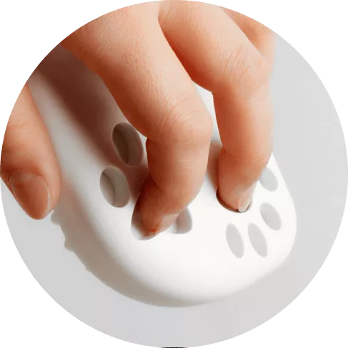 Special holes in the paw make it very simple to use and control. Put your fingers in them, and hold the brush firmly and confidently.