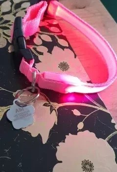 Walking at 3 a.m. has become safer with this brightly lit collar, making us visible to traffic.