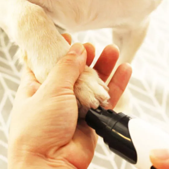 I bought this to use on my rescue dogs feet. I turned on the grinder and let them get used to the hum it makes and let them smell of it. Within a few minutes their nails were done