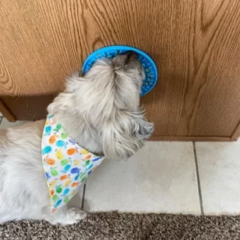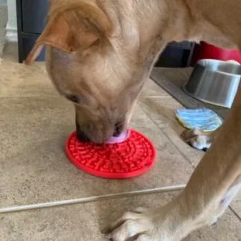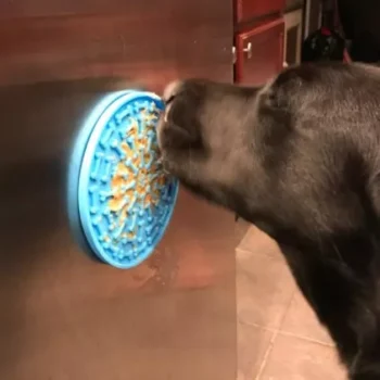 I just finished cutting and dremeling toenails on my three dogs with their total cooperation, thanks to this product. I just put squirt cheese in between the nubs of the slow treater, laid it on the grooming table, and the dogs were happily licking away while I worked on their feet. No pulling away, no second person to hold the dog, just me, some cheese, and the slow treater. I’m a fan!!!