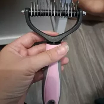 Never thought I'd rave about a pet grooming tool, but here I am! This double-sided hair remover is a game-changer. My home is finally winning the battle against pet hair, thanks to the efficient knot removal and easy de-shedding. My cat, usually averse to grooming, now purrs contentedly as I comb through her fur, thanks to the gentle, no-scratch design. The ergonomic handle means my comfort isn't sacrificed, and the sleek, healthy results speak for themselves. It's not just a brush; it's an essential part of our daily routine now.